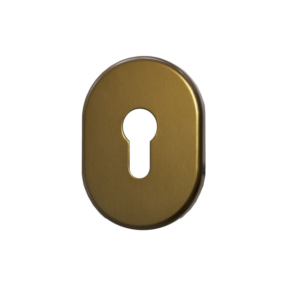 Placca corta per il cilindro chiave-chiave colore Bronzo può essere installata sia internamente che esternamente. Viene fornita con la sottoplacca in resina colore nero